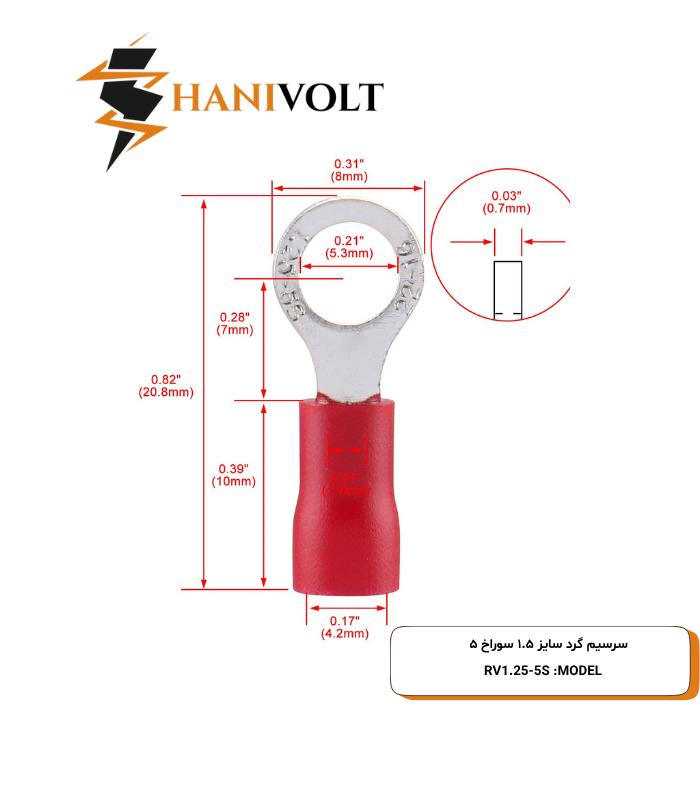 قطر سیم ورودی سرسیم، 5 میلی متر و رنگ سرسیم قرمز می باشد.